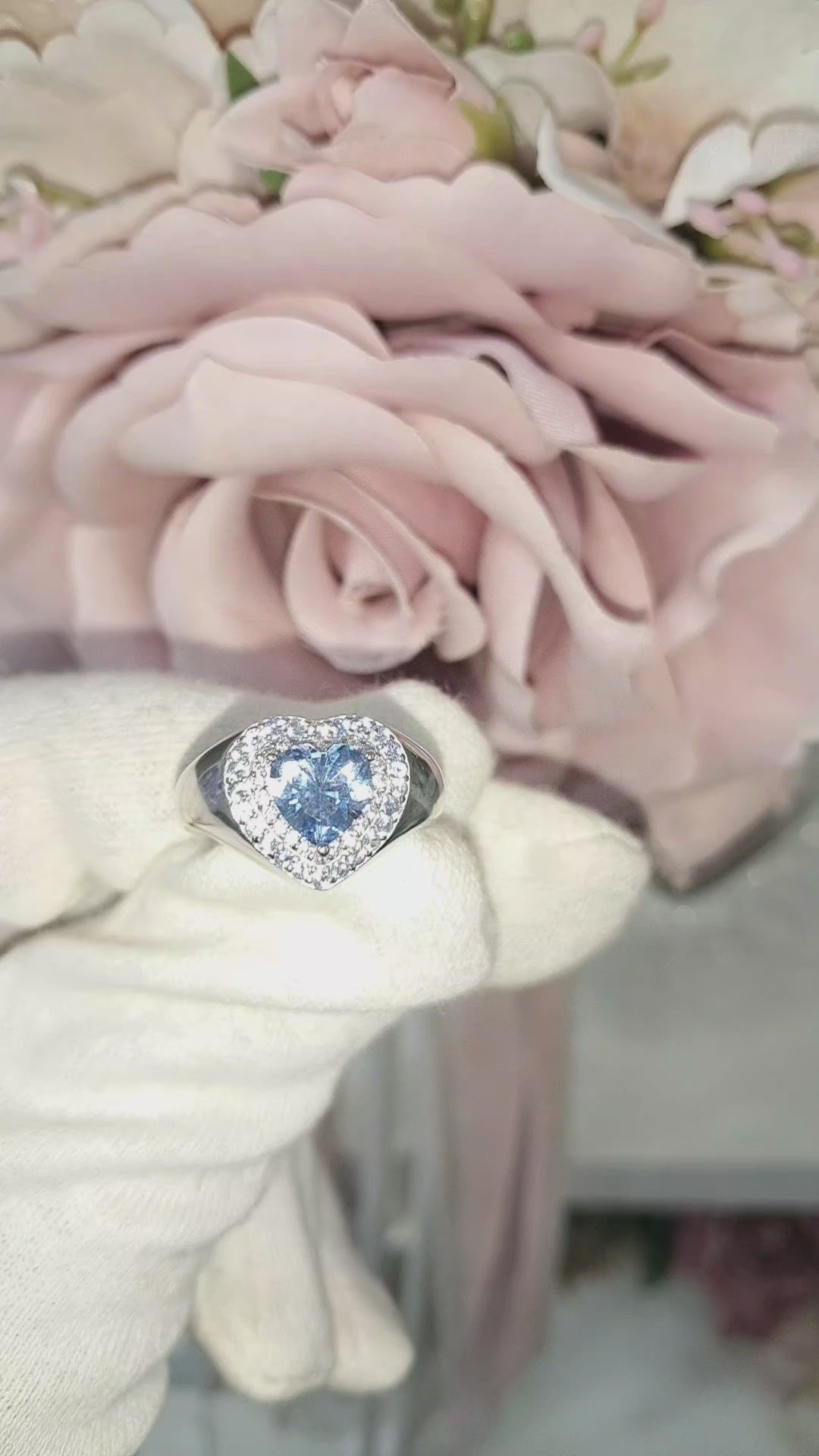 Anello in argento 925 placcato oro bianco 18kt con zirconi cubic. Dimensione cuore 1.2cm . Misura regolabile dalla 10 alla 18