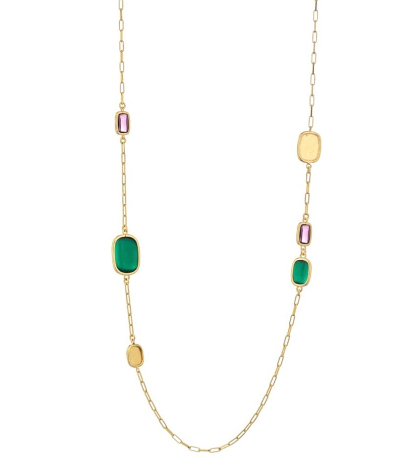 La Collana multicolor longuette - Itaca Colors è disponibile su una base sabbiata tipica della Collezione Itaca Colors e pietre multicolor. Lunghezza 90cm