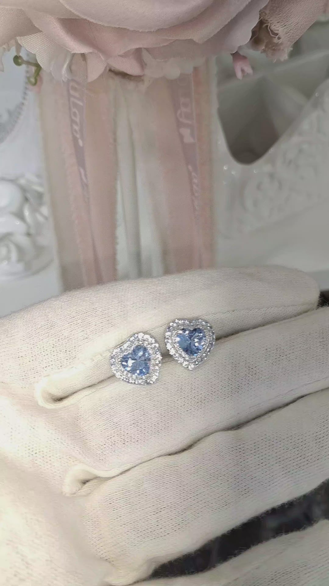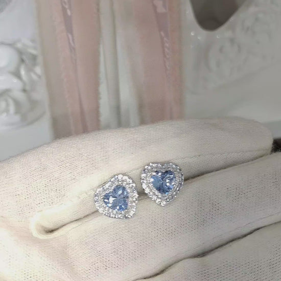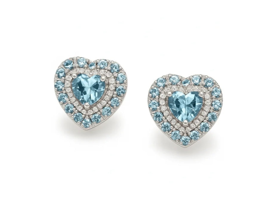 Orecchini in argento 925 placcati oro bianco 18kt con zirconi cubic. Dimensione cuore 1.2 cm