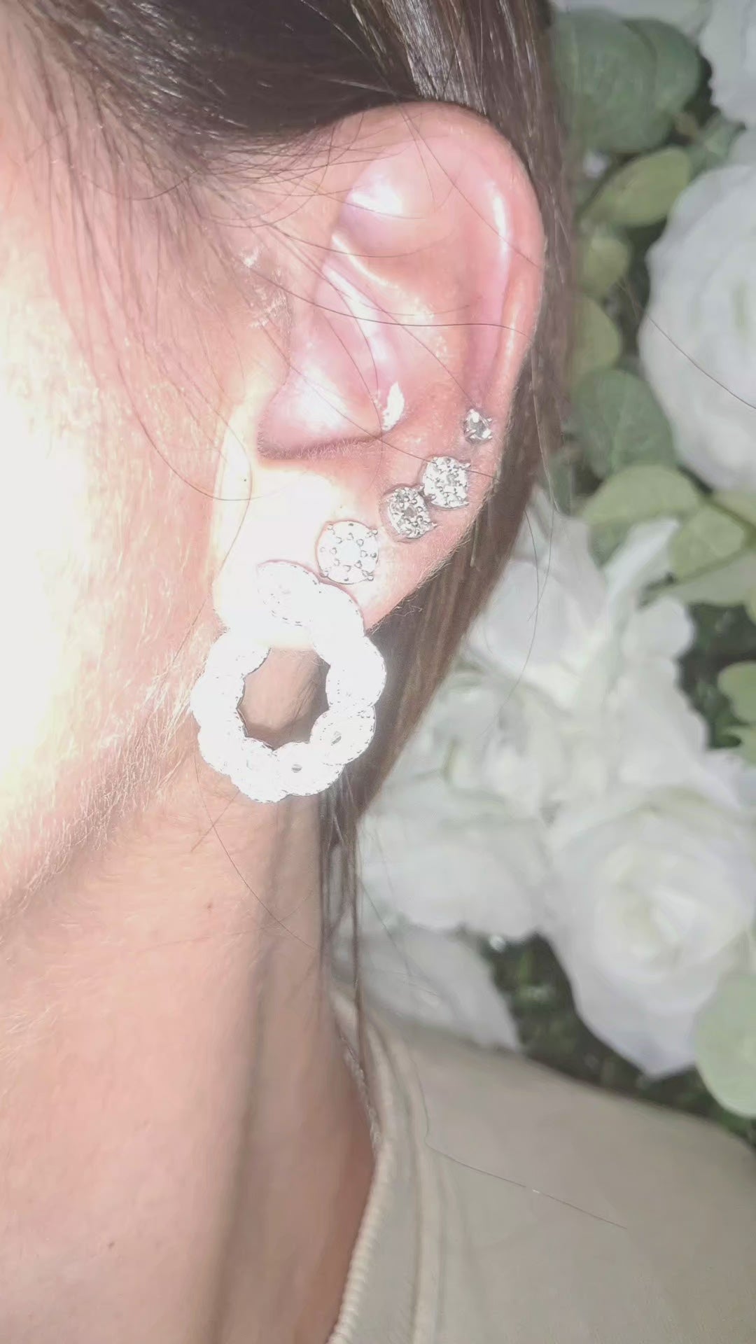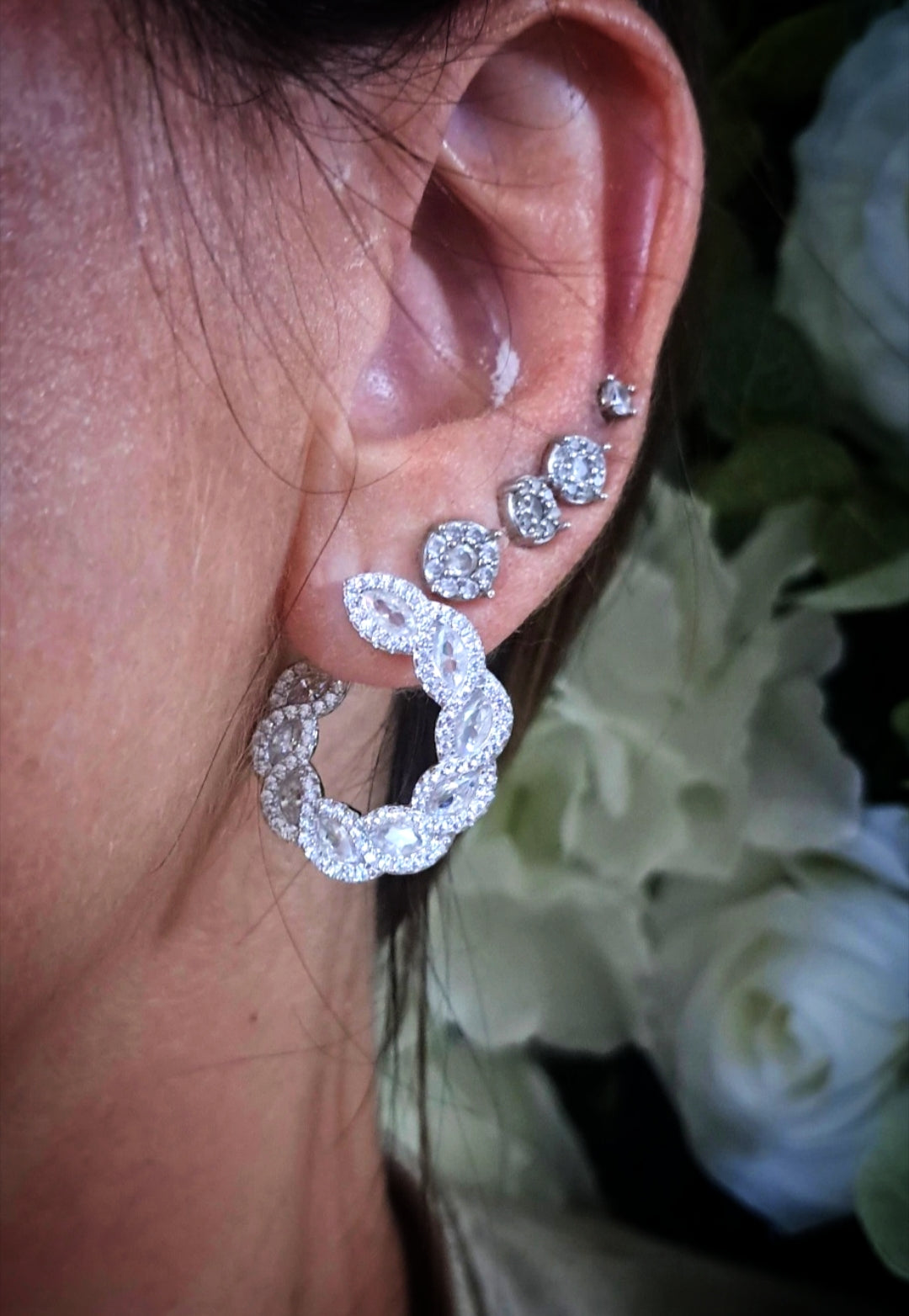 Orecchini in argento 925 placcati oro 18kt con zirconi vari tagli effetto super brillante. Un inno alla bellezza. Altezza 2 cm