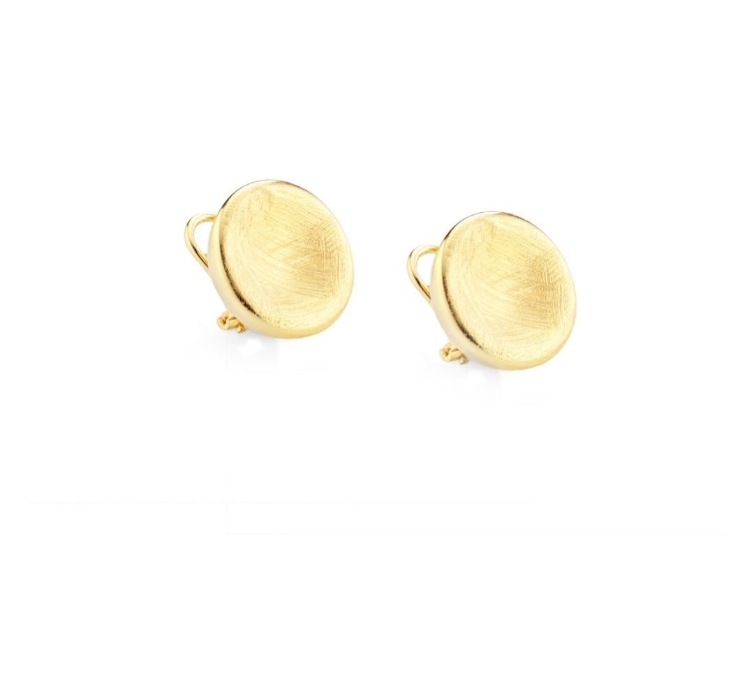 Orecchini in argento 925 placcati oro 18kt con particolare sabbiatura, con gancio chiusura perno più clip, diametro cm 1,5