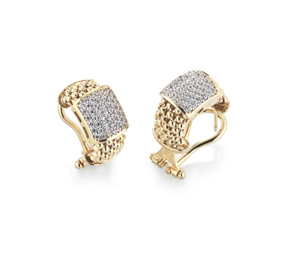 Orecchini Marcello Pane gioielli in argento 925 placcati oro 18kt con pavè di zirconi . Chiusura a scatto . Lunghezza 2cm