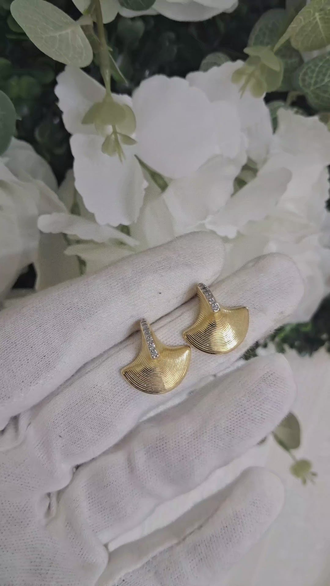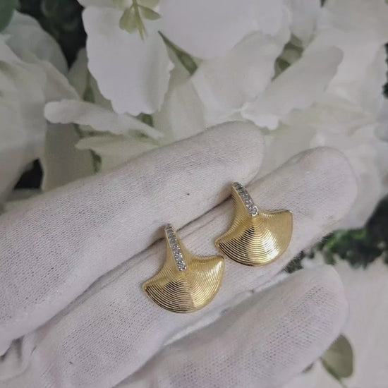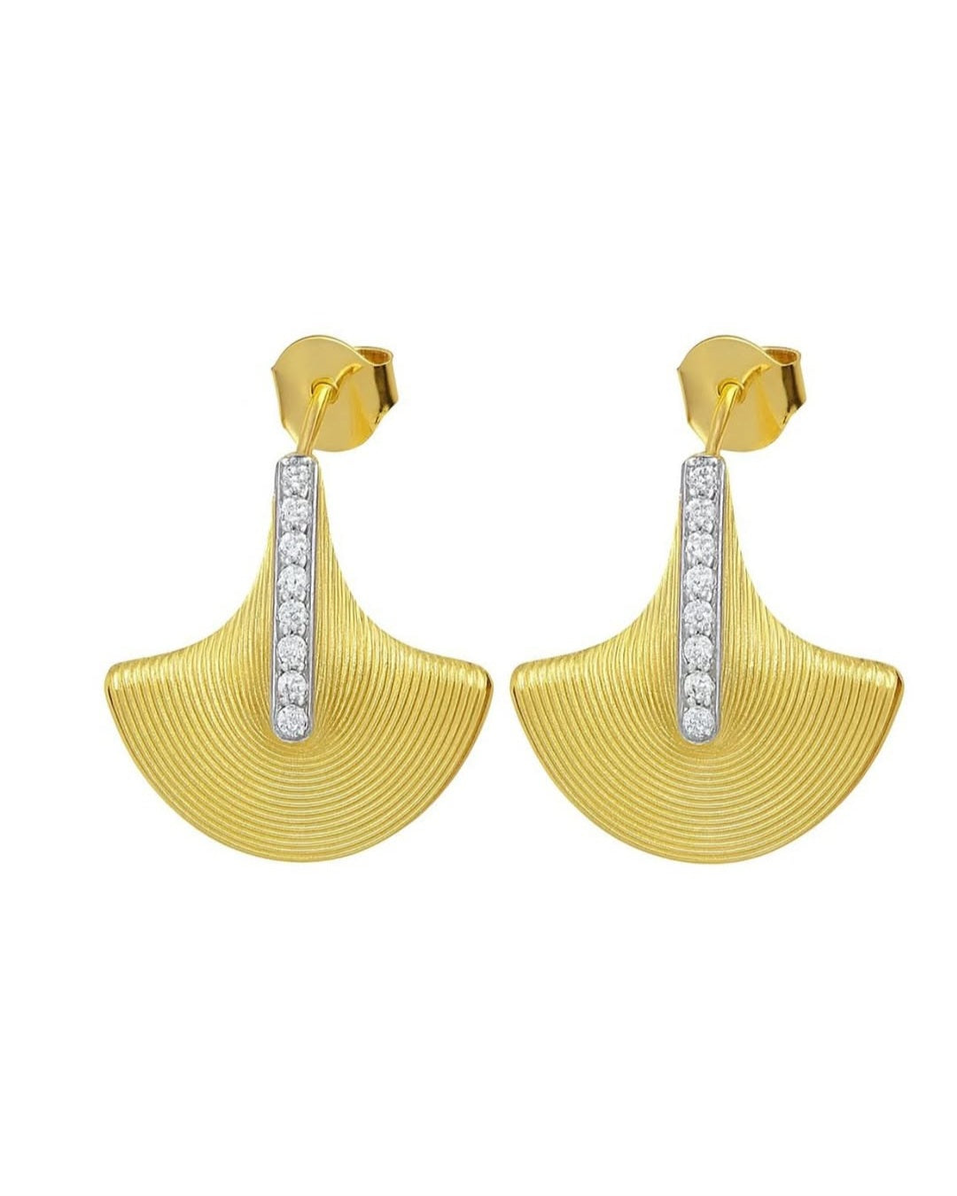 Orecchini lobo mood vintage in argento 925 placcato oro giallo 18kt e zirconi. Particolare lavorazione rigata